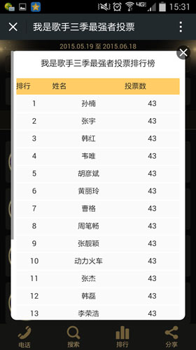 使用技巧:界面完全支持自定义,实时数据显示(参与选手,累计投票,访问量等),电话可直接跳转到拨号界面,选手报名参赛后后台可审核,搜索可以直接输入关键词搜索,排行版也是实时按投票数显示!
