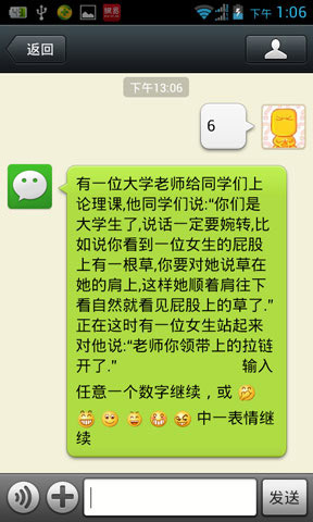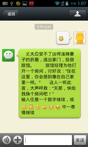 输入任何数字:0-9或者笑话或者笑脸的表情