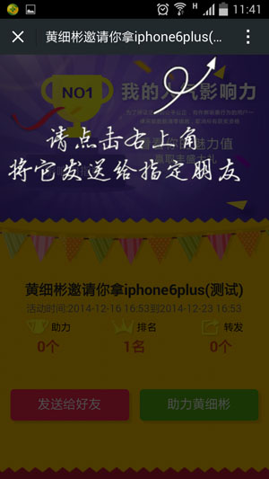 功能亮点:可检测转发数,助力数(指的是分享的点击数),根据助力数和转发数来排名次,商家可根据此来自定义活动的内容,比如:助力抢牛排,拼转发得iPhone之类的活动。