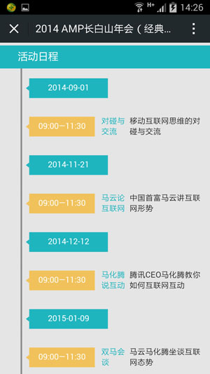 4.活动日程和演讲嘉宾可只有定义,并带有动态效果显示。