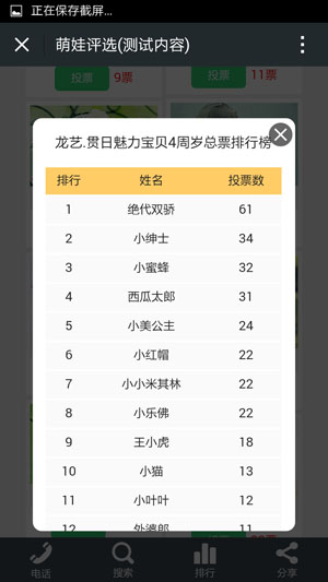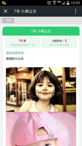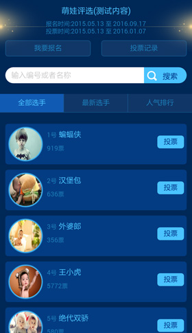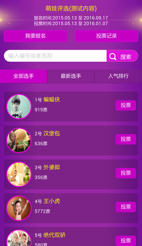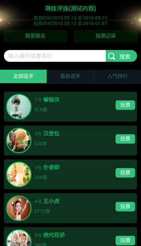 显示选手的票数,并且每分钟会更新一次,会显示选手排名,排名每十分钟统计更新