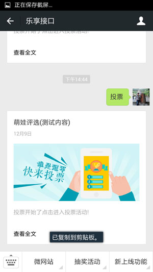 有单独的投票关键词(红色部分),发送关键词可直接进入到指定选手页面进行投票