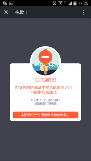 支持限定区域的人群才能参与活动,最高精确到市级,大的可以写省级,也支持跳转到指定链接