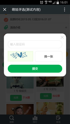用户需要输入验证码之后才能投票,后台可自定义选择开启与不开启