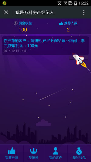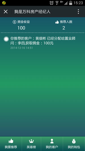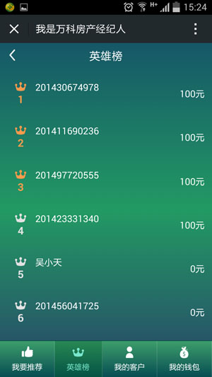 2.英雄榜可实时显示所有经纪人佣金情况并且排名,让用户形成攀比意识。